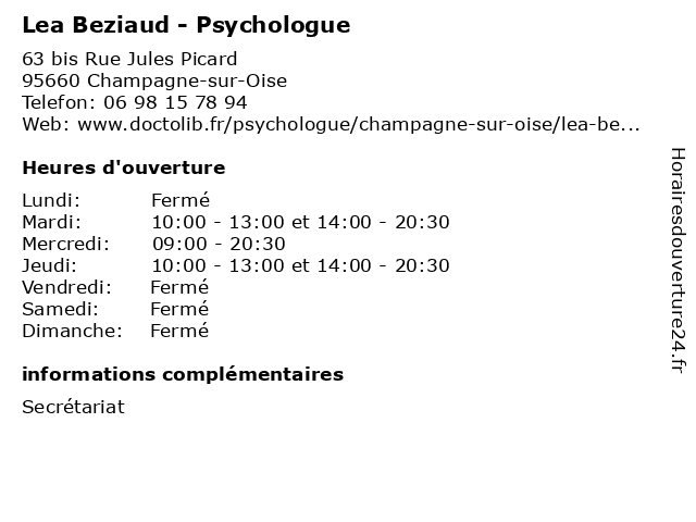 | Mardi | 10:00-13:00 et 14:00-20:30 |