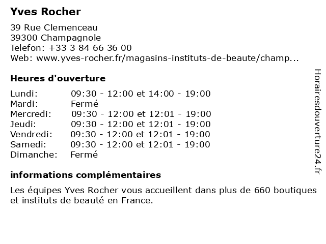 | Lundi | 09:30-12:00 et 14:00-19:00 |