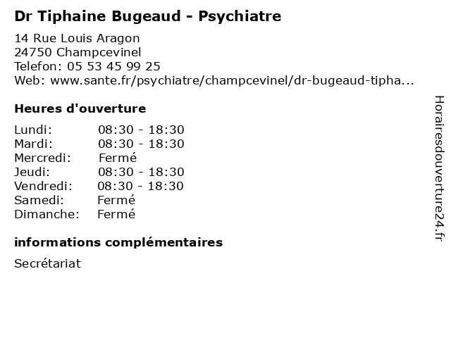 1 Dr Simon Dalge - Psychiatre (Distance: 0,00 km) 14 Rue Louis Aragon, 24750 Champcevinel dalge, dr, folie, psychiatre, psychiatrie, psychiatrique, simon 2 Dr Youcef Bensaid - Psychiatre (Distance: 2,64 km) 80 Avenue Georges Pompidou, 24000 Périgueux bensaid, consultation, docteur, dr, med, médecin, médecine, psychiatre, traitement, youcef 3 Dr Céline Boutot - Psychiatre (Distance: 2,64 km) 80 Avenue Georges Pompidou, 24000 Périgueux boutot, celine, consultation, céline, docteur, dr, med, médecin, médecine, psychiatre, traitement 4 Dr Dalil Cherif Mghari - Psychiatre (Distance: 2,64 km) 80 Avenue Georges Pompidou, 24000 Périgueux cherif, consultation, dalil, docteur, dr, med, mghari, médecin, médecine, psychiatre, traitement 5 Dr Claire Dupuy - Psychiatre (Distance: 2,64 km) 80 Avenue Georges Pompidou, 24000 Périgueux claire, consultation, docteur, dr, dupuy, med, médecin, médecine, psychiatre, traitement 6 Dr Julien Ganiayre - Psychiatre (Distance: 2,64 km) 80 Avenue Georges Pompidou, 24000 Périgueux consultation, docteur, dr, ganiayre, julien, med, médecin, médecine, psychiatre, traitement |