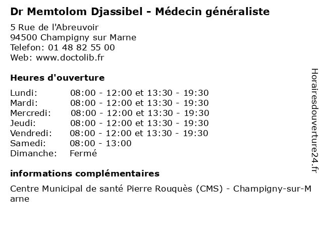 | Mercredi | 08:00-12:00 et 13:30-19:30 |