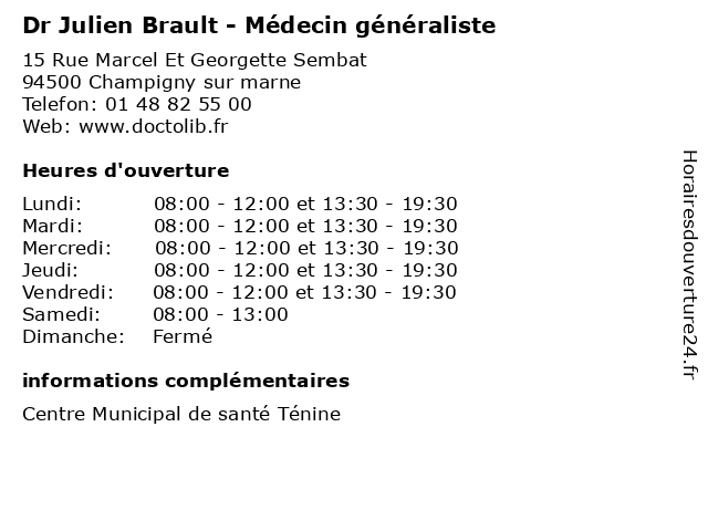 1 Dr Julien Brault - Médecin généraliste (Distance: 2,55 km) 5 Rue de l'Abreuvoir, 94500 Champigny sur Marne brault, dr, généraliste, julien, médecin, médecine, médical, pharmaceutique, traitement 2 Dr Julien Rousseau - Radiologue (Distance: 0,61 km) 35 Rue de Musselburgh, 94500 Champigny-sur-Marne centre, d'egine, d'imagerie, diagnostique, dr, hppe, hôpital, imagerie, imef, julien, médicale, paul, privé, radiologie, radiologue, rousseau, thérapeutique 3 Dr Julien Lincot - Radiologue (Distance: 0,61 km) 35 Rue de Musselburgh, 94500 Champigny-sur-Marne centre, d'egine, d'imagerie, diagnostique, dr, hppe, hôpital, imagerie, imef, julien, lincot, médicale, paul, privé, radiologie, radiologue, thérapeutique 4 Dr Julien Lauroy - Cardiologue (Distance: 0,61 km) 35 Rue de Musselburgh, 94500 Champigny-sur-Marne cardio, cardiologie, cardiologue, coeur, dr, julien, lauroy 5 Dr Ophélie Brault-Meslin - Cardiologue (Distance: 0,61 km) 35 Rue de Musselburgh, 94500 Champigny-sur-Marne brault, cardiologue, consultation, docteur, dr, med, meslin, médecin, médecine, ophélie, traitement 6 Dr. Julien Simon - Dentiste (Distance: 2,46 km) 42B Boulevard Rabelais, 94100 Saint-Maur-des-Fossés dentiste, dr., julien, medecins, simon |