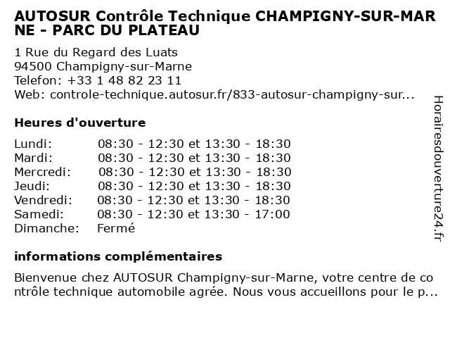 | Samedi | 08:30-12:30 et 13:30-17:00 |