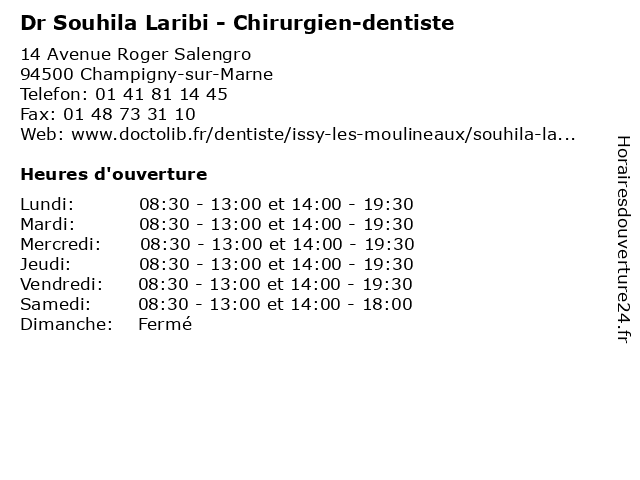 | Lundi | 08:30-13:00 et 14:00-19:30 |