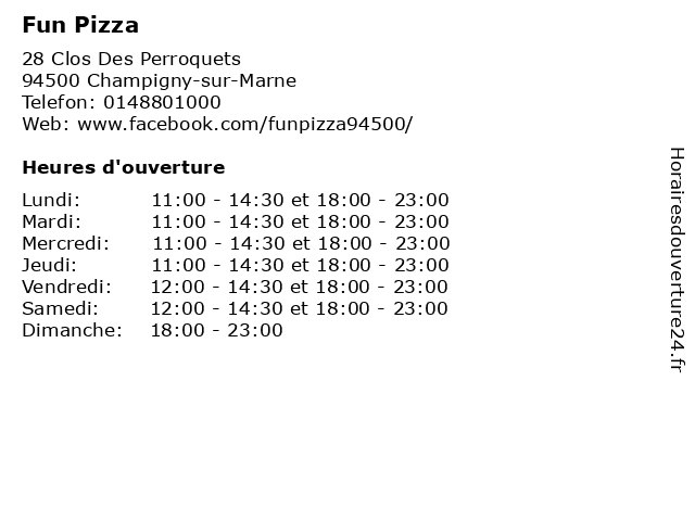 | Lundi | 11:00-14:30 et 18:00-23:00 |