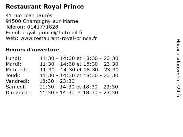 Dimanche | 11:30-14:30 et 18:30-23:30 |