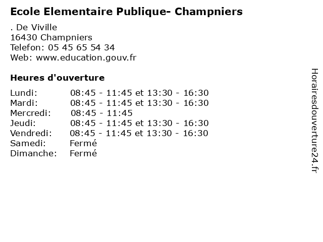| Mardi | 08:45-11:45 et 13:30-16:30 |
