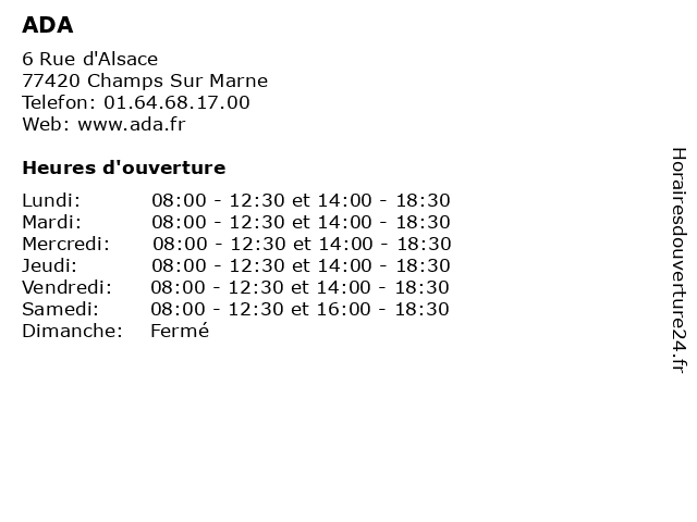 Lundi | 08:00-12:30 et 14:00-18:30 |