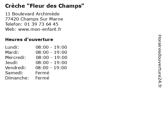 1 Crèche People and Baby - Fleur des Champs (Distance: 0,01 km) 11 Boulevard Archimède, 77420 Champs sur Marne and, baby, champs, crèche, crèches, des, fleur, garde d'enfants, les services parentalité, people, projet social, projet éducatif 2 Crèche People and Baby - Fleur des Champs (Distance: 0,89 km) 14 Rue Galilée, 77420 Champs-sur-Marne and, baby, champs, crèche, crèches, des, fleur, garde d'enfants, les services parentalité, people, projet social, projet éducatif 3 A Fleur d'Eau (Distance: 3,25 km) 29 Place émile menier, 77186 Noisiel d'eau, fleur, fleuriste, noisiel 4 A Fleur d'Eau (Distance: 3,25 km) 29 Place Emile Menier, 77337 Noisiel bouquet, commande, composition, d'eau, deuil, déco, fleur, fleuriste, livraison, mariage 5 Fleur de nuit (Distance: 15,84 km) 22 Boulevard Richard Lenoir, 75011 Paris bouquet, de, fleur, florists, flower, nuit 6 Fleur De Coriandre (Distance: 16,08 km) 7 Rue du Grand Prieuré, 75011 Paris buffet, coriandre, cuisine variée, de, exotique, fleur, restaurant, épices |