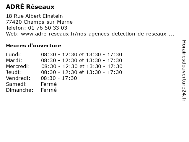 | Lundi | 08:30-12:30 et 13:30-17:30 |