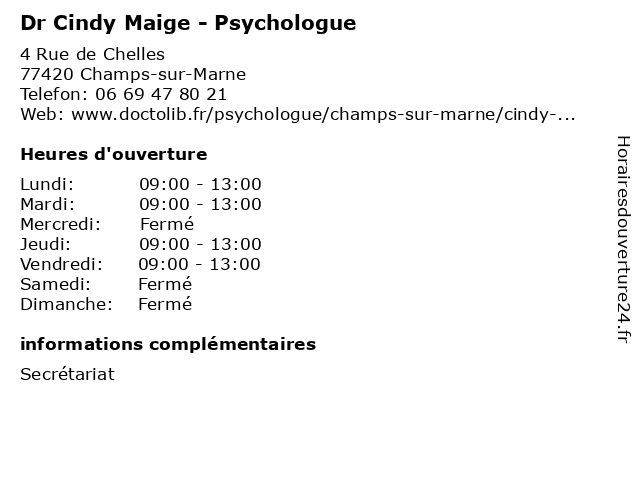 | Lundi | 09:00-13:00 |