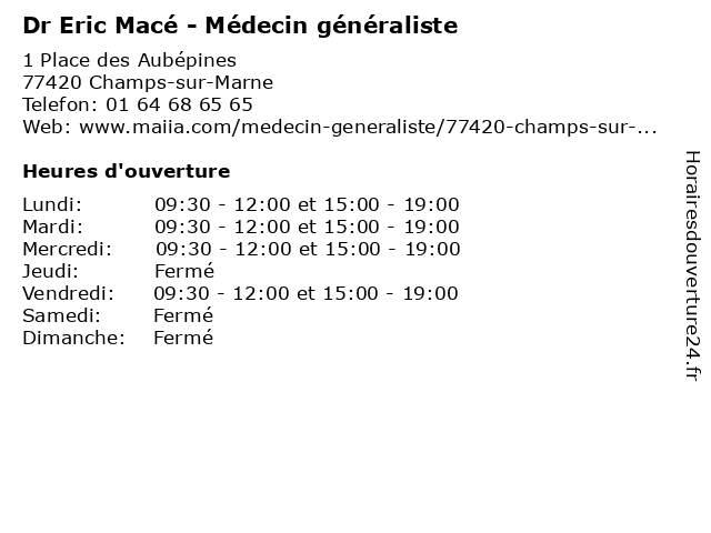 | Mercredi | 09:30-12:00 et 15:00-19:00 |