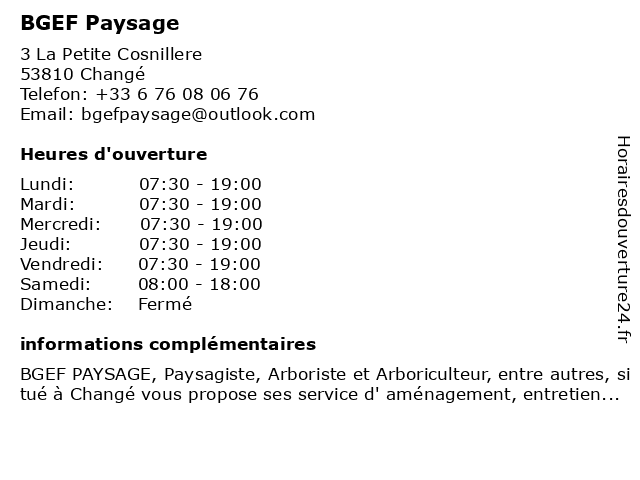 3 ECO CONCEPT PAYSAGE (Distance: 19,62 km) La Germillonnière, 53380 Juvigné amenagement de plans d'eau, concept, culture hors-sol, dépollution du sol par les plantes, eco, eco-paturage, entretien des espaces verts, fertilisation du sol, filtration de l'air intérieur par les plantes, location de matériel, paysage, taille haie, élagage arbre 4 Jardin Et Paysage (Distance: 25,43 km) Chemin de la Perrière, 53100 Saint-Georges-Buttavent et, jardin, paysage 5 Jaguelin paysage (Distance: 30,14 km) Route de Craon, 53200 Château-Gontier-sur-Mayenne jaguelin, paysage 6 |