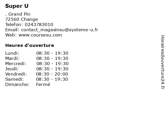 4 Super U (Distance: 6,26 km) 37-41 Avenue du Général De Gaulle, 72000 Le Mans marche, services, super, supermarche 6 |