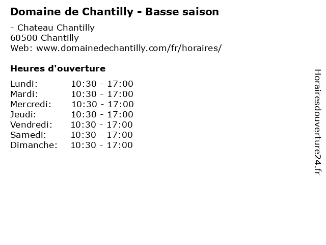 | Dimanche | 10:30-17:00 |