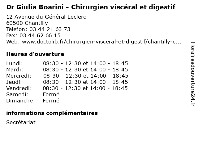 | Lundi | 08:30-12:30 et 14:00-18:45 |