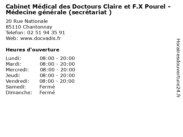 Termes de recherche pour Cabinet Médical des Doctours Claire et F.X Pourel - Médecine générale (secrétariat ):et, des, cabinet, générale, medecine, santé, medical, claire, secretariat, docteur, consultation, doctours, f.x, pourel |