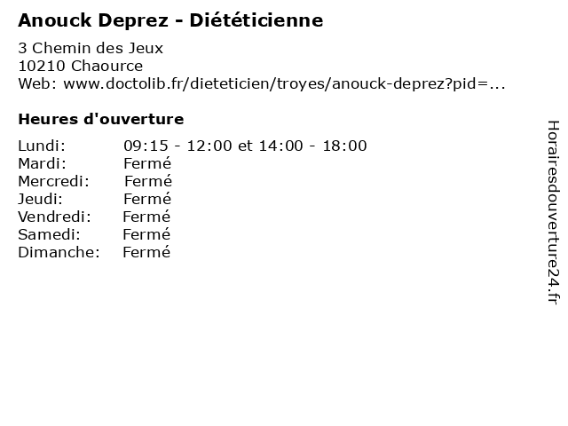 | Lundi | 09:15-12:00 et 14:00-18:00 |