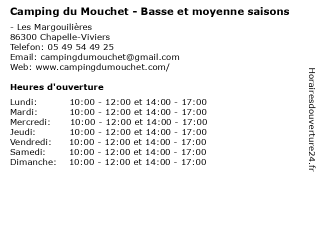 | Mardi | 10:00-12:00 et 14:00-17:00 |