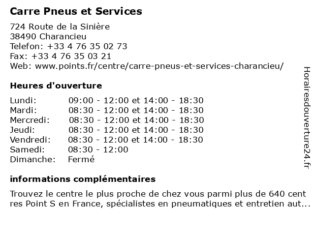 1 Carre Pneus Et Services (Distance: 4,82 km) 94 Avenue de la Folatière, 38480 Le Pont-de-Beauvoisin carre, et, pneus, services 2 Carre Pneus Et Services (Distance: 18,42 km) 2 Grange Venin, 38380 Saint-Laurent-du-Pont carre, et, pneus, services 3 Dauphiné Pneus (Distance: 2,14 km) 114bis Rue de la République, 38490 Les Abrets automobile, dauphiné, entretien, garage, montage, pneus, réparation, vidange 4 SILIGOM EXPRESS - DAUPHINÉ PNEUS (Distance: 2,16 km) 1366 Rue de la République, 38490 Les Abrets en Dauphiné dauphiné, express, garage automobile les abrets en dauphine, pneu 4 saisons les abrets en dauphine, pneu hiver les abrets en dauphine, pneu michelin les abrets en dauphine, pneu moto les abrets en dauphine, pneu pas cher les abrets en dauphine, pneus, promo pneu les abrets en dauphine, promotion pneu les abrets en dauphine, revision voiture les abrets en dauphine, siligom, vidange voiture les abrets en dauphine 5 First Stop Prieur Pneus Le Pont-de-Beauvoisin (Distance: 7,57 km) Avenue Jean Jaures, 73330 Le Pont-de-Beauvoisin beauvoisin, de, first, le, pneus, pont, prieur, stop 6 Confort Auto - Alain Pneus (Distance: 12,55 km) 58 route de Vétonne, 73470 Ayn alain, atelier, auto, automobile, carrosserie, confort, entretien, garage, pneus, réparation |
