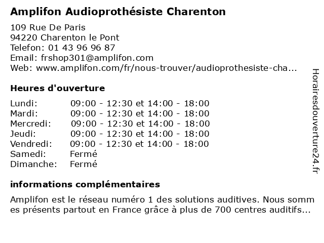1 Audika - Audioprothésiste Charenton-le-pont (Distance: 0,13 km) 80 Rue de Paris, 94220 Charenton-le-Pont appareil auditif, audika, audiologiste, audioprothésiste, centre auditif, charenton, le, pont, spécialiste audition 2 Duroc Audition - Audioprothésiste - Charenton Le Pont (Distance: 0,52 km) 59 Rue de Paris, 94220 Charenton-le-Pont audioprothésiste, audition, charenton, duroc, le, pont 3 Audioprothésiste Ideal Audition Charenton Le Pont (Distance: 0,72 km) 27 Avenue du Maréchal de Lattre de Tassigny, 94220 Charenton-le-Pont audioprothésiste, audition, charenton, ideal, le, pont 4 Amplifon Audioprothésiste Alfortville Acouvox (Distance: 2,00 km) 150 Rue Paul Vaillant Couturier, 94140 Alfortville acouvox, alfortville, amplifon, audiologie, audioprothésiste 5 Amplifon Audioprothésiste Saint Mandé (Distance: 2,37 km) 1 Avenue gambetta, 94160 Saint Mandé amplifon, audiologie, audioprothésiste, mandé, saint 6 Nina Corcos - Audioprothésiste (Distance: 2,84 km) 15 Boulevard de Bercy, 75012 Paris audio, audio2000, audioprothésiste, audition, corcos, nina, oreille |