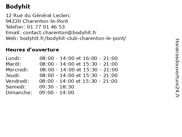 1 Bodyhit (Distance: 2,47 km) 116 Rue de Reuilly, 75012 Paris activités, bodyhit, sport, studio, électro, électrostimulation 2 Bodyhit (Distance: 2,70 km) 1 place du Général Leclerc, 94160 Saint-Mandé biens, bodyhit, sport, stimulation, électro 3 Bodyhit (Distance: 3,10 km) 9 rue de Lagny, 75020 Paris bien, bodyhit, du, etre, physique, préparation, salle, sport, stimulation, électro 4 Bodyhit (Distance: 3,16 km) 30 rue de l'Eglise, 94300 Vincennes bien, bodyhit, du, etre, physique, préparation, salle, sport, stimulation, électro 5 Bodyhit (Distance: 3,40 km) 9 rue Paul Verlaine, 94410 Saint-Maurice bien, bodyhit, du, etre, physique, préparation, salle, sport, stimulation, électro 6 Bodyhit (Distance: 4,64 km) 22 Boulevard Rouget de Lisle, 93100 Montreuil activités, bodyhit, electro stimulations, entraînements, fitness, sport, sportif |
