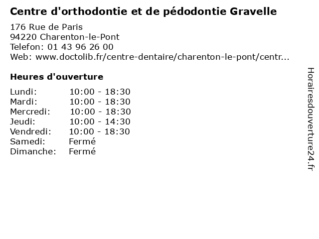 1 Pharmacie de Gravelle (Distance: 0,51 km) 118 rue de Paris, 94220 Charenton Le Pont de, gravelle, herboristerie, médicaments, paramédical, parapharmacie, pharmacie, pharmacien, santé, traitements 2 Yespark, location de parking au mois - Gravelle Paris 12 - Paris (Distance: 0,81 km) 7 Rue de Gravelle, 75012 Paris 12, au, de, gravelle, location, mois, paris, parking, yespark 3 Dr. Tibi Allegra - Orthodontie (Distance: 1,50 km) 25 Boulevard de Picpus, 75012 Paris allegra, docteur, dr., medecins, orthodontie, sante, tibi 4 Dr. Volcot-Freeman Sabina - Orthodontie (Distance: 1,50 km) 25 Boulevard de Picpus, 75012 Paris docteur, dr., freeman, medecins, orthodontie, sabina, sante, volcot 5 Orpi - Gravelle Immobilier (Distance: 1,62 km) 3 rue Edmond Nocard, 94410 Saint Maurice agence, gravelle, immobilier, immobilière, orpi 6 École Maternelle Publique Gravelle (Distance: 4,45 km) 2 Place Montgolfier, 94410 Saint-Maurice ecole, education, gravelle, maternelle, publique, services, école |