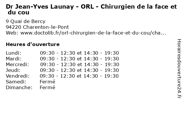 | Mercredi | 09:30-12:30 et 14:30-19:30 |