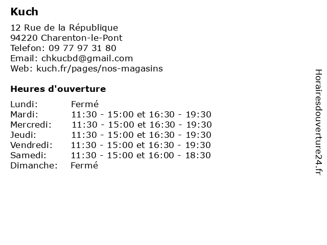 Samedi | 11:30-15:00 et 16:00-18:30 |