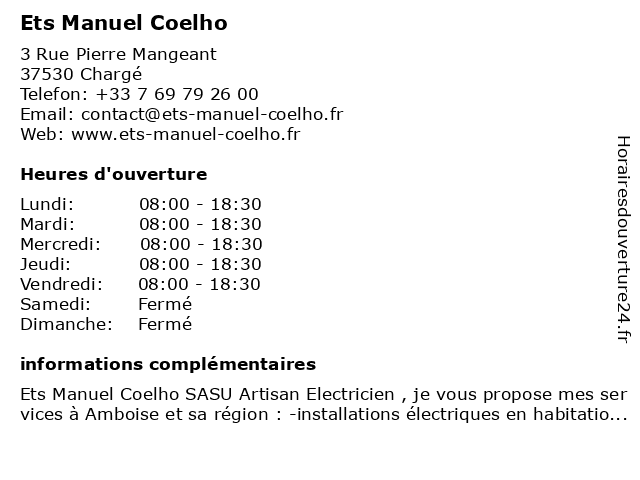 1 Ets Bozdag (Distance: 4,03 km) 133 Avenue Léonard de Vinci, 37400 Amboise bozdag, dépannage, ets, ets bozdag, électricien, électricité 3 Coudurier Christian ETS (Distance: 12,88 km) 6 Rue des Artisans, 37270 Saint-Martin-le-Beau christian, coudurier, ets 6 Laborderie - Guignard Ets (Distance: 14,25 km) 30 Route de la Rabotière, 41400 Saint Georges sur Cher art, artisanale, boutique, ets, guignard, laborderie, laborderie - guignard ets |