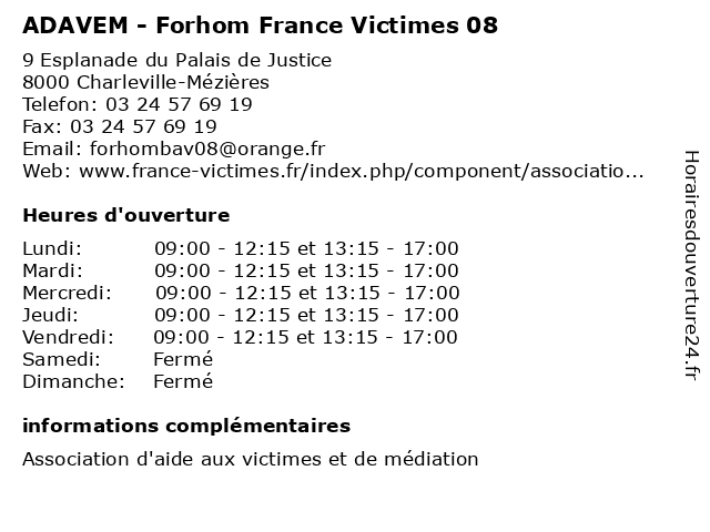 Termes de recherche pour ADAVEM - Forhom France Victimes 08:france, 08, association, victimes, aide, mediation, adavem, forhom |