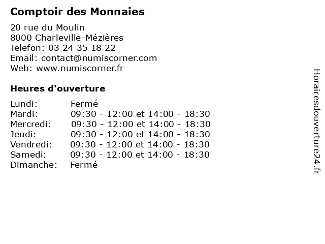| Mardi | 09:30-12:00 et 14:00-18:30 |