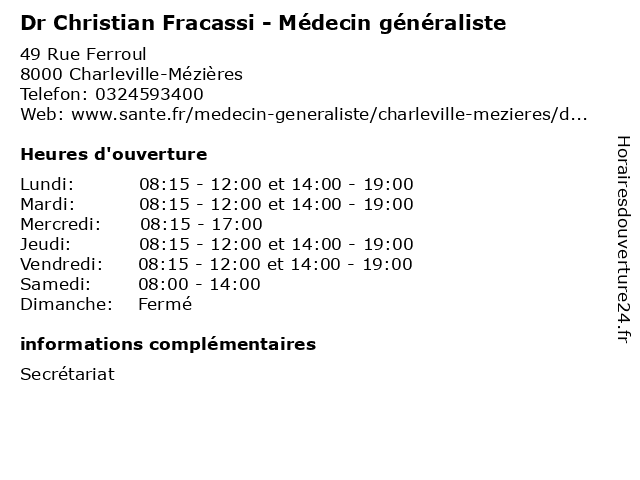 | Lundi | 08:15-12:00 et 14:00-19:00 |