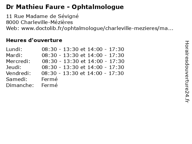 | Mercredi | 08:30-13:30 et 14:00-17:30 |