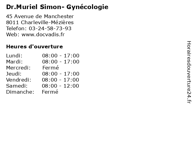 1 CH Charleville Mézières - Gynécologie-Obstétrique / Assistance Medicale À La Procreation (Distance: 0,00 km) 45 Avenue de Manchester, 08011 Charleville Mézières assistance, bureau, ch, charleville, consultation, dr, gynécologie, la, maladie, med, medicale, médecin, médecine, mézières, obstétrique, pratique, procreation, thérapie, traitement 2 Centre hospitalier - Gynécologie (secrétariat ) (Distance: 0,00 km) 45 Avenue de Manchester, 08011 Charleville-Mézières centre, consultation, docteur, gynécologie, hospitalier, santé, secrétariat 3 CH Charleville Mézières - Gynécologie-Obstétrique / Gynecologie Et Obstetrique Pour Tout Rdv (Distance: 0,00 km) 45 Avenue de Manchester, 08011 Charleville Mézières bureau, ch, charleville, consultation, dr, et, gynecologie, gynécologie, maladie, med, médecin, médecine, mézières, obstetrique, obstétrique, pour, pratique, rdv, thérapie, tout 4 Dr Driss Bougrienne - Gynécologie Obstretrique (Distance: 0,22 km) 45 Avenue de Manchester, 08000 Charleville-Mézières bebe, bougrienne, dr, driss, gynecologie, gynécologie, maternite, obstetrique, obstretrique 5 Centre Hospitalier Nord-Ardenne - Service de gynécologie (Distance: 0,22 km) 45 Avenue de Manchester, 08011 Charleville-Mézières ardenne, centre, consultation, de, docteur, gynécologie, hospitalier, médecins, nord, santé, secrétariat, service 6 Espace Médical Simon (Distance: 0,44 km) 58 Avenue de Saint-Julien, 08000 Charleville-Mézières espace, médical, simon |