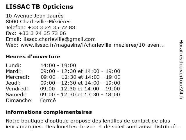 | Mercredi | 09:00-12:30 et 14:00-19:00 |