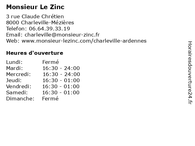 | Mercredi | 16:30-24:00 |