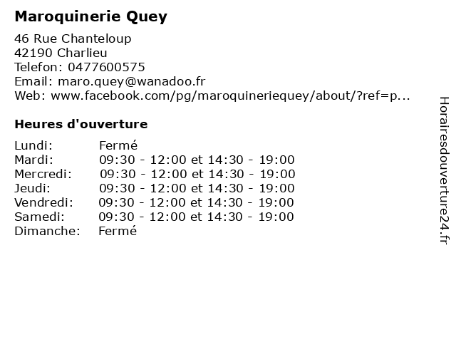 Samedi | 09:30-12:00 et 14:30-19:00 |