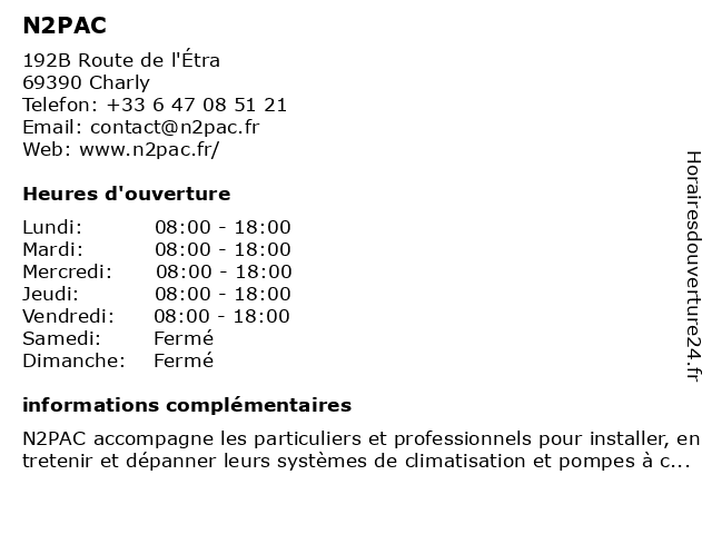 N2PAC accompagne les particuliers et professionnels pour installer, entretenir et dépanner leurs systèmes de climatisation et pompes à chaleur. Basée à Charly, lentreprise propose des solut...