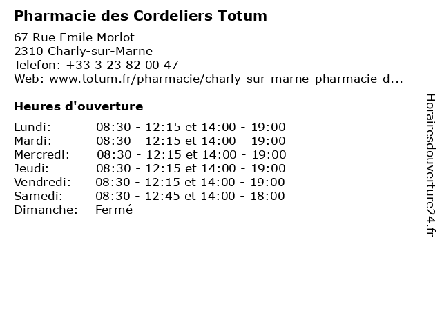 | Mardi | 08:30-12:15 et 14:00-19:00 |