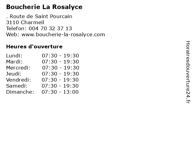 | Samedi | 07:30-19:30 |