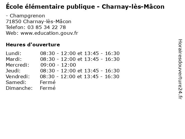 | Lundi | 08:30-12:00 et 13:45-16:30 |