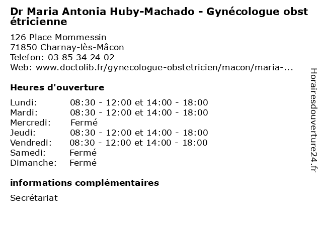 | Lundi | 08:30-12:00 et 14:00-18:00 |