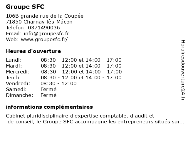 | Lundi | 08:30-12:00 et 14:00-17:00 |
