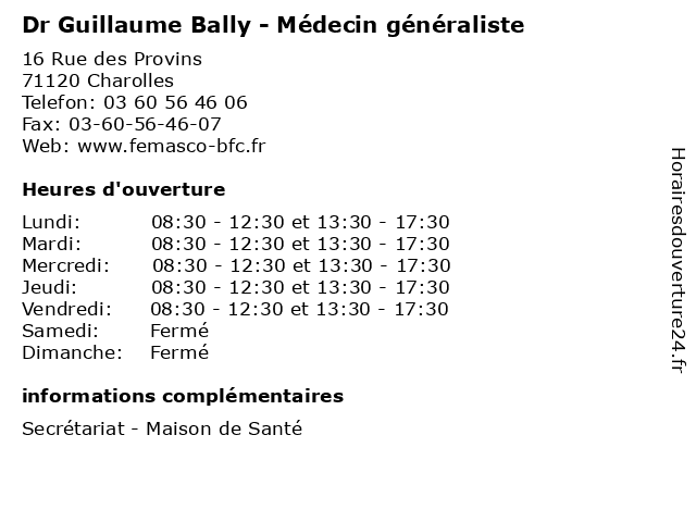 Lundi | 08:30-12:30 et 13:30-17:30 |