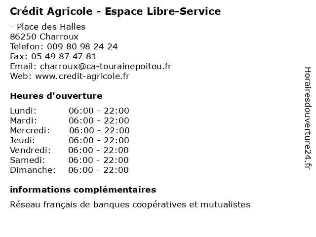 1 Crédit Agricole - Espace Libre-Service (Distance: 8,63 km) 7 Rue des Douves, 86400 Civray agence, agricole, assurance, bancaire, banque, crédit, espace, libre, service 2 Crédit Agricole - Espace Libre-Service (Distance: 17,68 km) 4 Place du Marché, 86350 Usson-du-Poitou agence, agricole, assurance, bancaire, banque, crédit, espace, libre, service 3 Crédit Agricole - Espace Libre-Service (Distance: 19,31 km) - Rue du 11 Novembre 1918, 86460 Availles-Limouzine agence, agricole, assurance, banque, credit, crédit, espace, libre, mutuel, pyrenees, service 4 CREDIT AGRICOLE CHARROUX (Distance: 0,03 km) 3/5 Place des Halles, 86250 Charroux agricole, charroux, credit 5 Mutualité sociale agricole (MSA) Sèvres-Vienne (Distance: 7,50 km) 4 rue de Fayolles, 86400 Savigné accueil, agricole, information, msa, mutualité, mutuelle, santé, sociale, sèvres, vienne 6 |