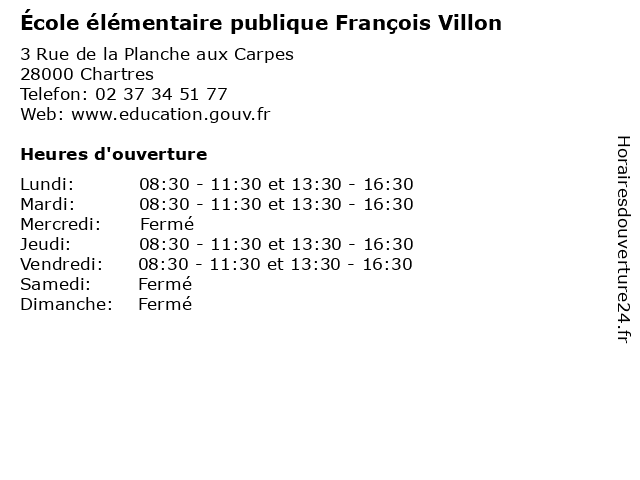 | Mardi | 08:30-11:30 et 13:30-16:30 |