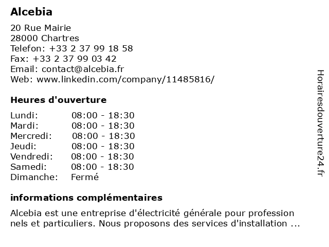 1 PRO&Cie - Ent Alcebia Energies (Distance: 20,95 km) 4 Rue Émile Grapperon, 28150 Les Villages-Vovéens alarme, alcebia, borne de recharge véhicules électriques, chauffage, chauffe-eau, climatisation, cuisine, domotique, electroménager, energies, ent, froid commercial, froid industriel, pompe à chaleur, pro&cie, réparation, sav, vidéo-surveillance, électricité |