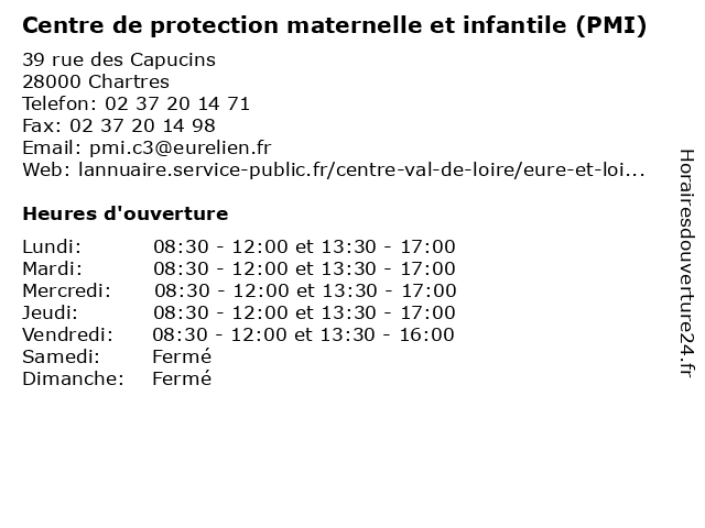 | Lundi | 08:30-12:00 et 13:30-17:00 |