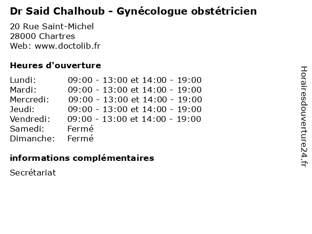 | Mardi | 09:00-13:00 et 14:00-19:00 |