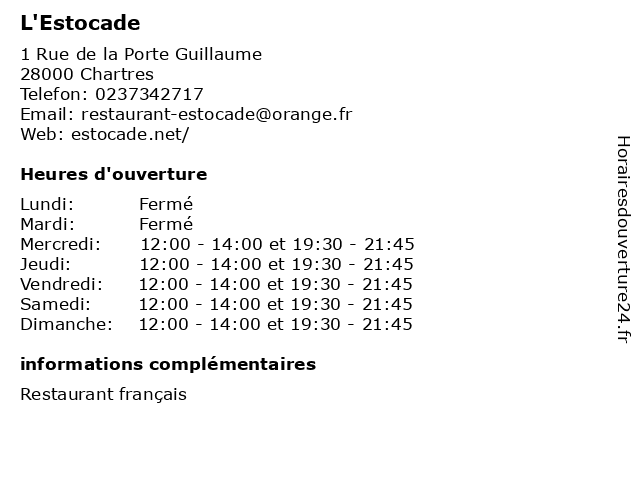 1 Les Feuillantines (Distance: 0,11 km) 4 Rue du Bourg, 28000 Chartres bar, bistro, bistrot, brasserie, café, feuillantines, les, restaurant, restauration 2 SOS Poupée Malade (Distance: 0,25 km) 10 rue au Lait, 28000 Chartres malade, poupée, poupées, reproduction, restauration, réparation, sos 3 Restaurant La Picoterie (Distance: 0,28 km) 36 Rue des Changes, 28000 Chartres brasserie, la, pasylchris, picoterie, restaurant, restaurants 4 Restaurant Le Cathédrale (Distance: 0,28 km) 37 Rue des Changes, 28000 Chartres bar, brasserie, café, cathédrale, le, restaurant, traditionnel 6 Riad Café - Salon de Thé (Distance: 0,34 km) 24 Rue de la Clouterie, 28000 Chartres bar, bistro, bistrot, brasserie, café, de, restaurant, restauration, riad, salon, thé |